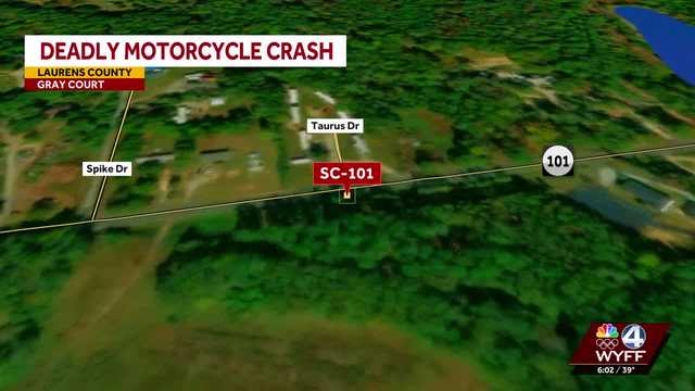 5+ hour, 20+ min ago (92+ words) A motorcyclist has died after a crash in Laurens County, South Carolina, according to the South Carolina Highway Patrol. Troopers say it happened around 5:50 p.m. Saturday on Highway 101 near Taurus Drive in Gray Court. They say a 2011 Kawasaki motorcycle was traveling north on Highway 101 when the driver lost control and fell into the southbound lane. The motorcyclist was then hit by a 2015 Honda sedan. Troopers tell us that the driver of the motorcycle died on the scene. The coroner has not yet identified the victim....